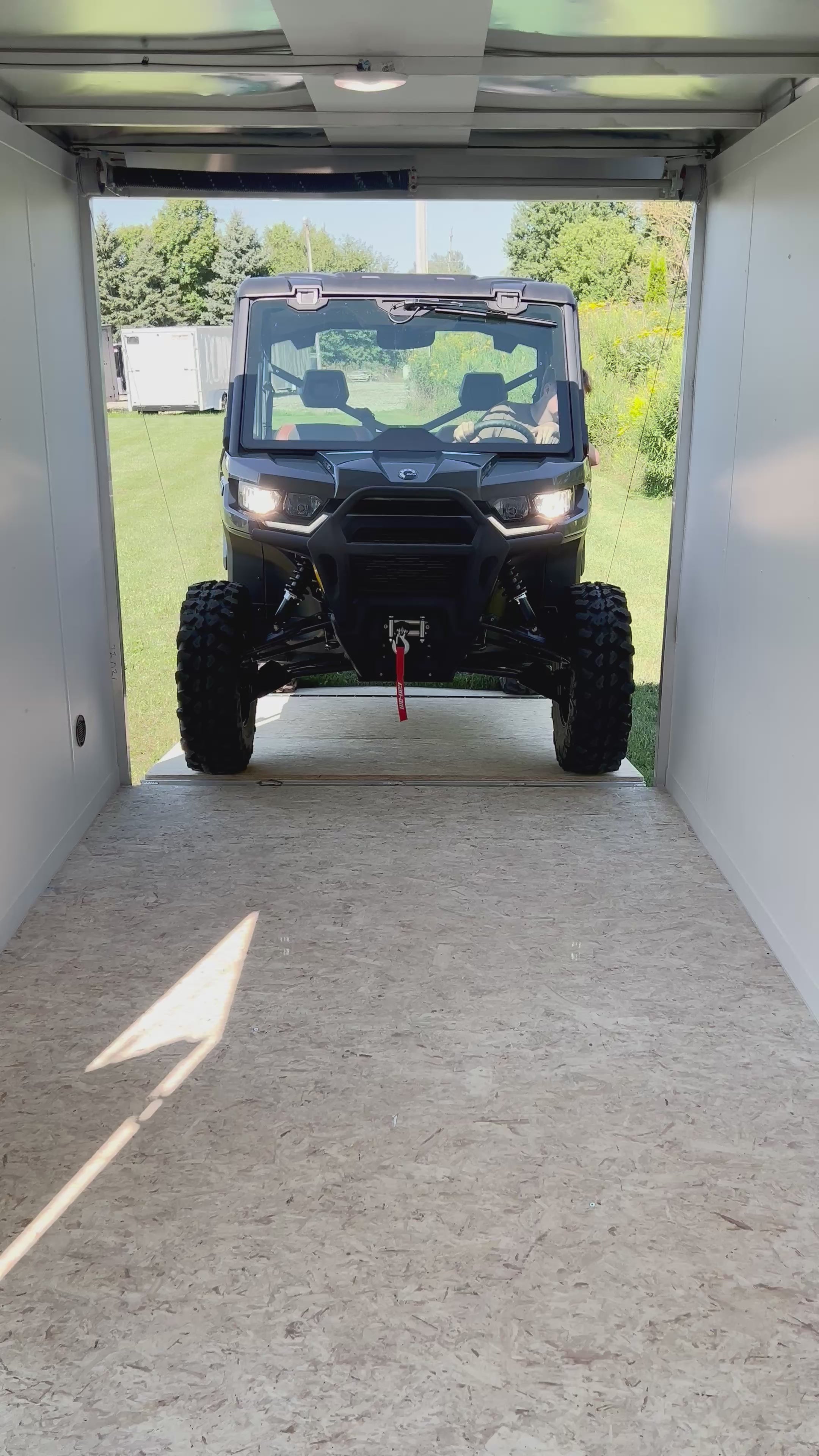 Finally a trailer that is designed to accommodate modern Side by Sides. The door opening is tall enough allow a Can Am Defender with 30" wheels with room to spare. The side door is 4 foot wide and positioned to allow you to exit your machine with ease. We can custom order these types of trailers with options to suite your specific needs.